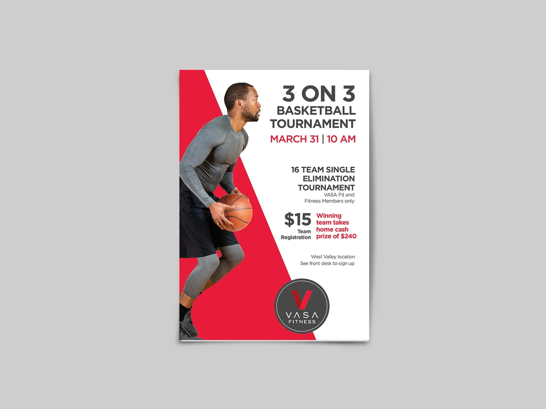 VASA Fitness’s Basketball Tournament Poster Design for their in-house 3 on 3 game amongst their gym members.